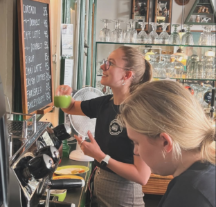 I sommermånederne er også Toldbodens gård åben for servering, og at sidde der i ro og fred er et helt eventyr for sig selv. Desuden inddrages også gaden, lige så snart vejret gør det muligt, så Quedens Gaard kan bidrage til byens puls – til fornøjelse for både lokale borgere og byens gæster.